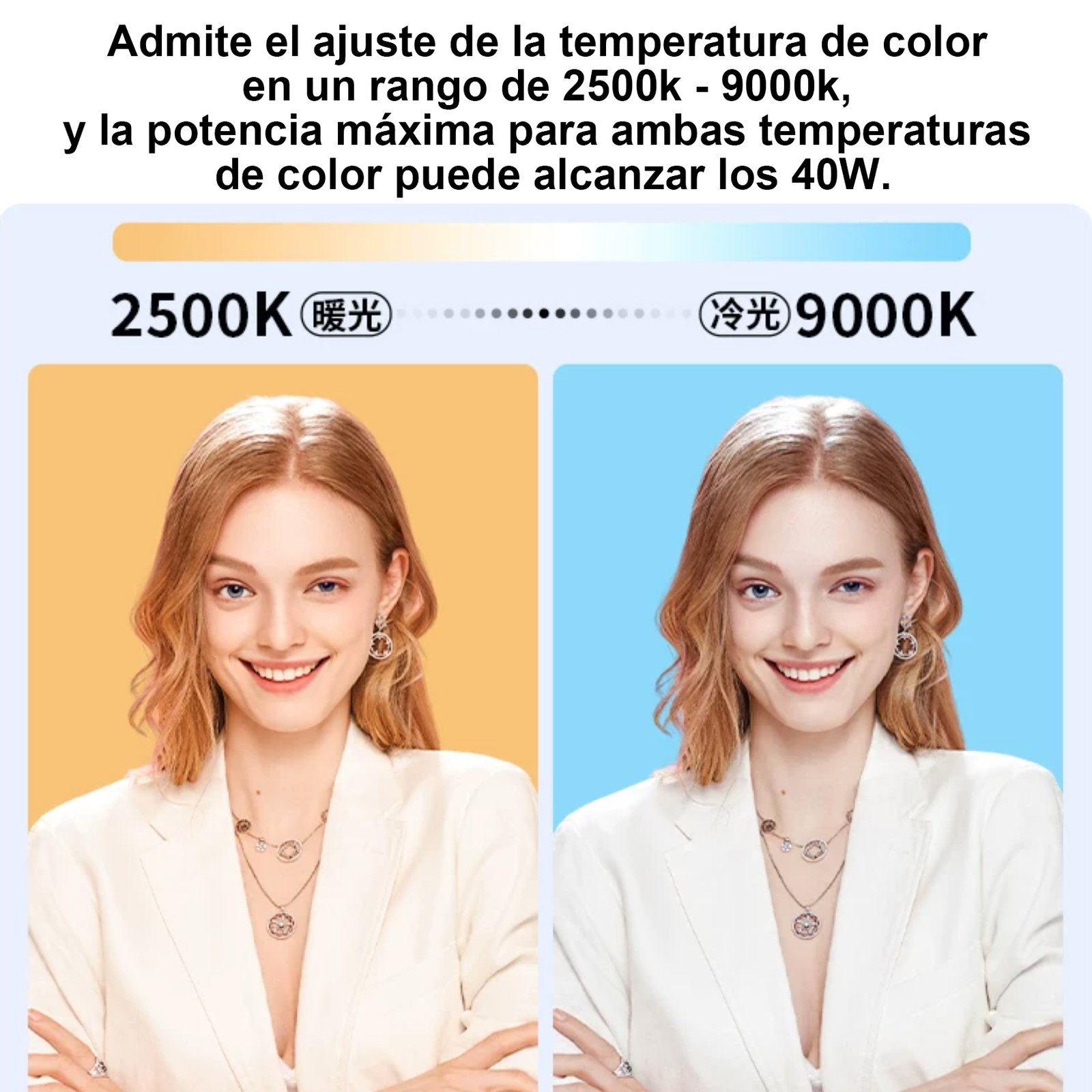 Ajusta la luz según tu escena: de 2500K a 9000K (±200K), desde tonos cálidos hasta fríos con total precisión.🔆 Brillo regulable al 100%